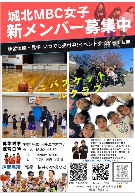 | チーム名 | 城北男女ミニバスケットボールクラブ |