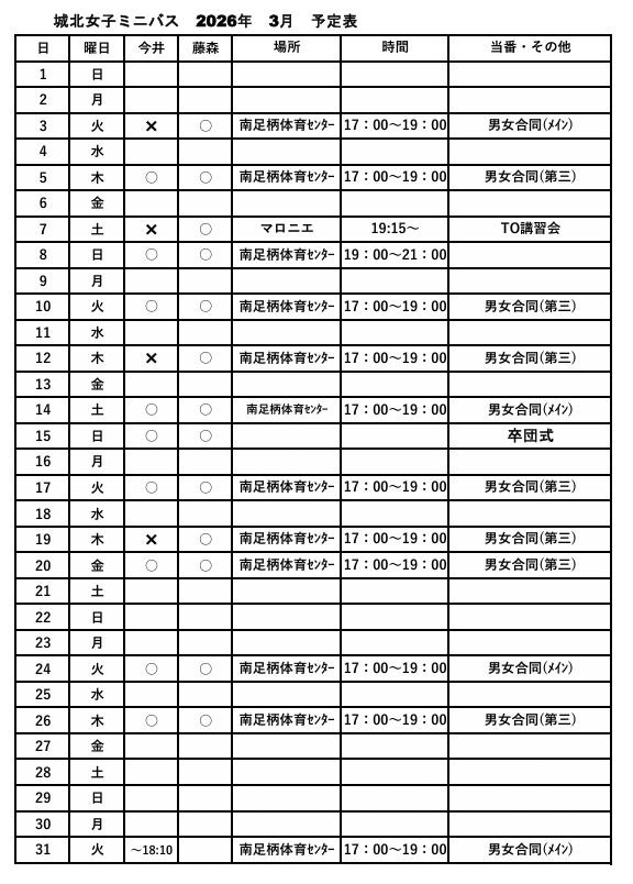 3月のスケジュールになります🏀見学・体験はいつでもOK👌お問い合わせはメールにて😃